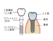 人工の歯根を埋め込み、人工の歯をかぶせる治療法です。